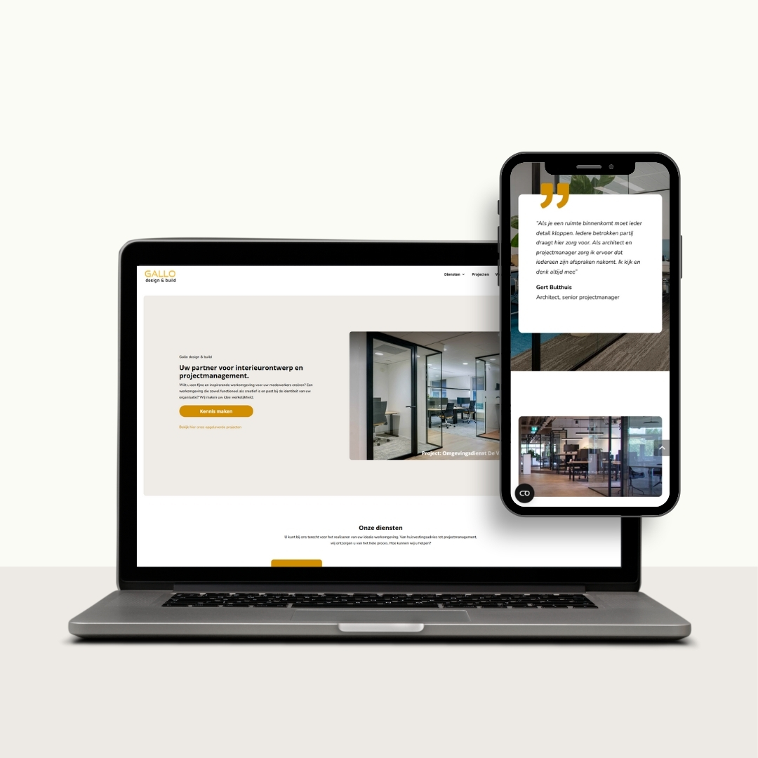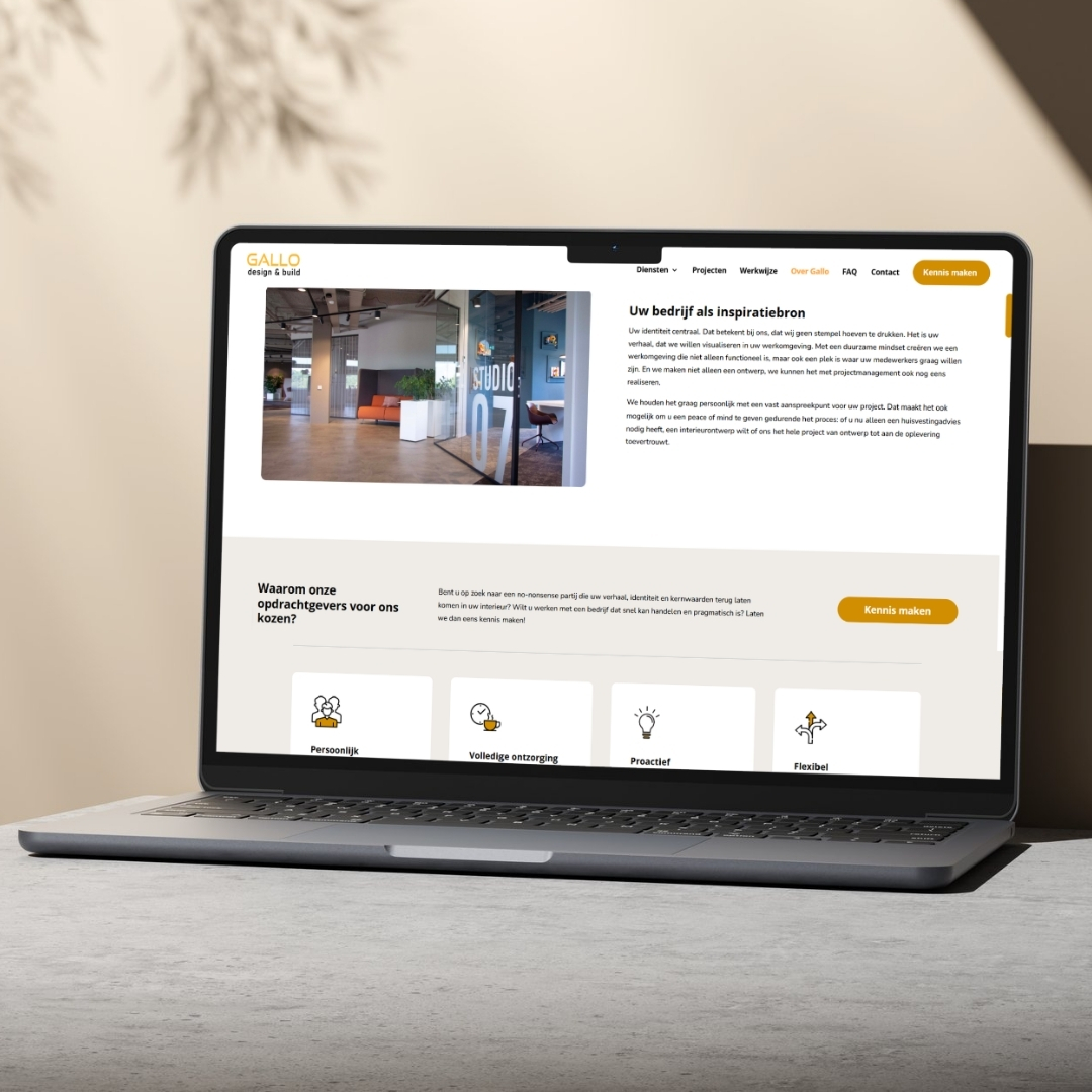 Gallo design & build is een full-service partner in interieurontwerp en realisatie voor zakelijke werkomgevingen, met ruim 15 jaar ervaring. Ze helpen organisaties bij het creëren van functionele, inspirerende en merk-gedreven kantooromgevingen. Wij hebben voor Gallo D&B een moderne website gebouwd die volledig aansluit bij hun kernwaarden en huisstijl.