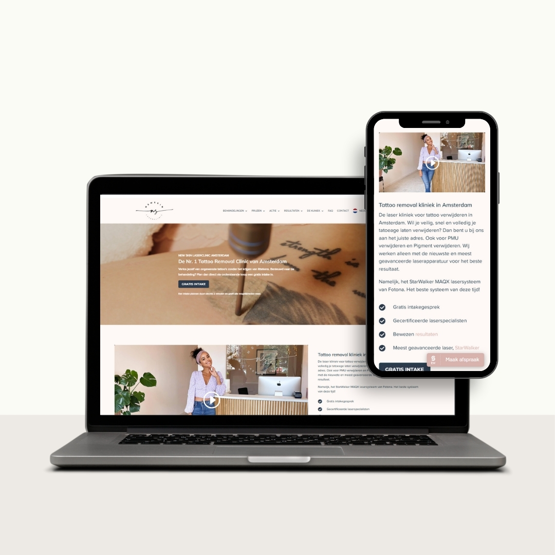 New Skin Laserclinic in Amsterdam is gespecialiseerd in het veilig en effectief verwijderen van ongewenste tatoeages, PMU, pigmentvlekken en littekens met geavanceerde lasertechnologie. Wij Hebben voor New Skin Laserclinic een nieuwe moderne website mogen bouwen die perfect aansluit bij doelgroep en wensen.